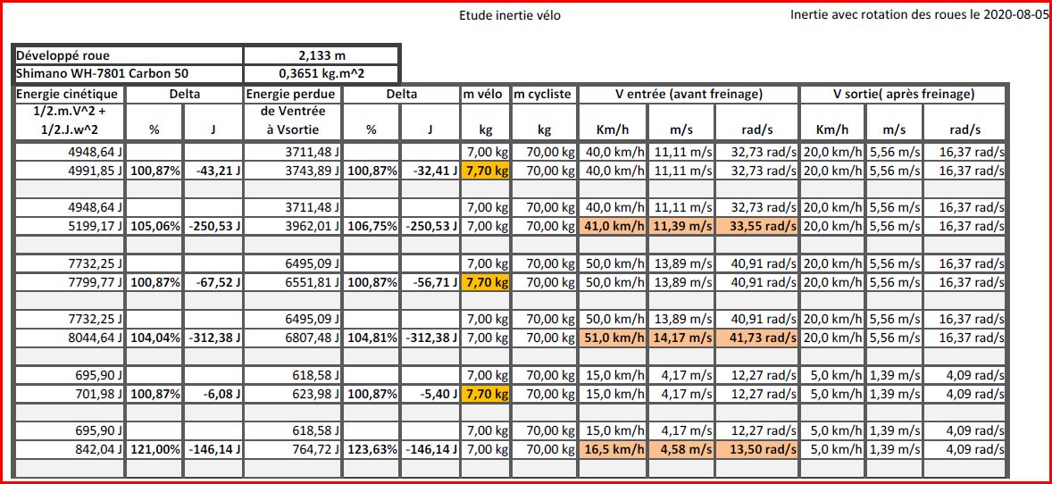 Si cela choque personnes, ce moment d'inertie, je publierai le tableau mise à jour tenant compte de l'énergie cinétique tenant compte de l'inertie des roues ! !!