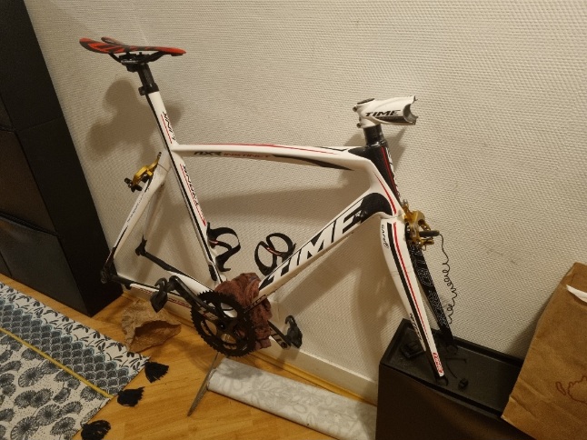 Je passerai vous le présenter avec photos, car je suis en train de l'optimiser : potence Time, pédalier Sram red à la place d'un rival, dérailleur dura ace à la place d'un Ultegra fatigué, selle 3D carbone à la place d'une Prologo, pédales Time Xpresso au lien de Shimano SPD 6600...
